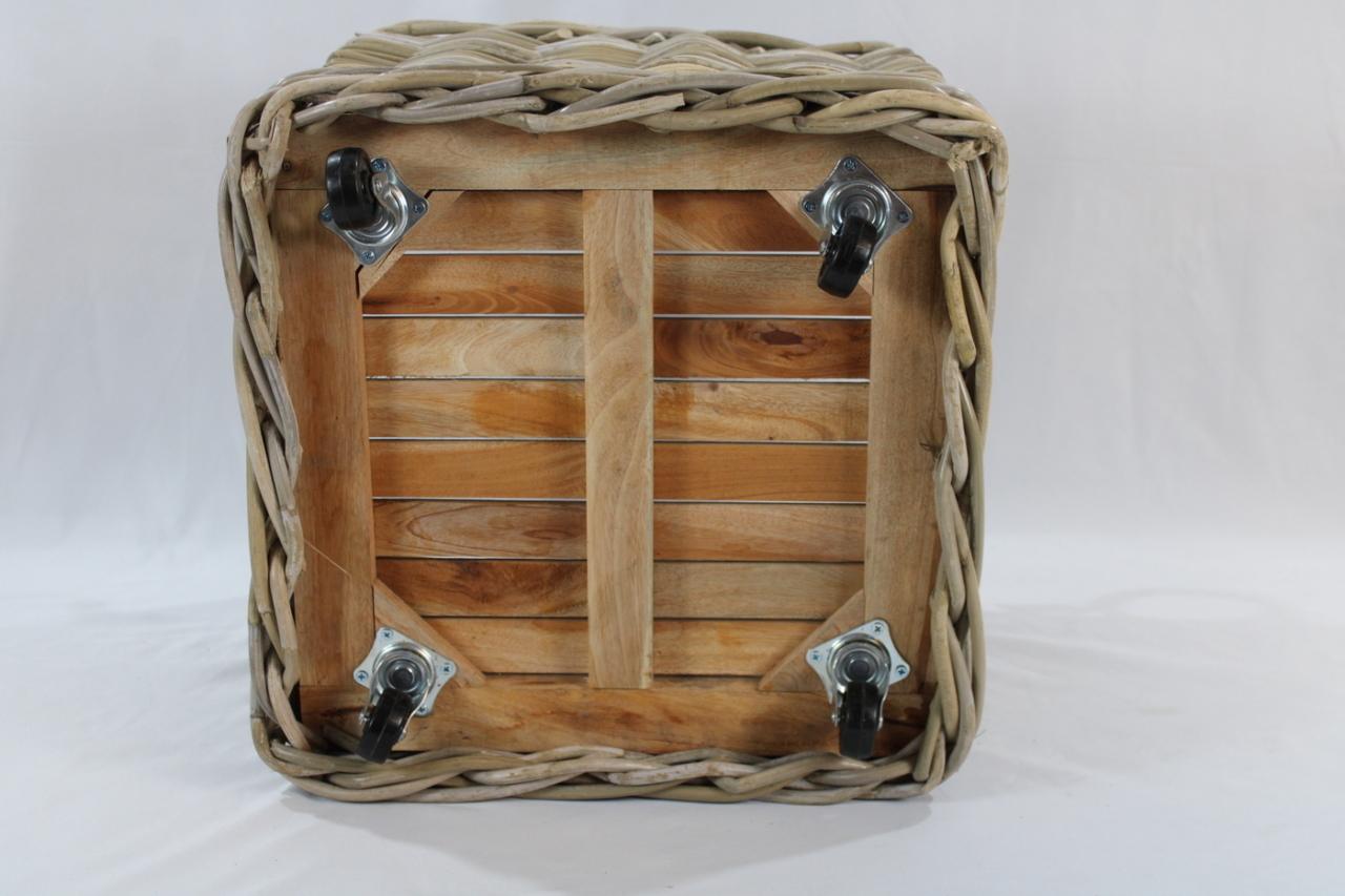 Panier en bois de rotin à roulettes Avec revêtement intérieur en bois Dimensions intérieures : L 55 cm x l 30 cm x H 40 cm Dimensions extérieures : L 60 cm x l 35 cm x H 45 cm