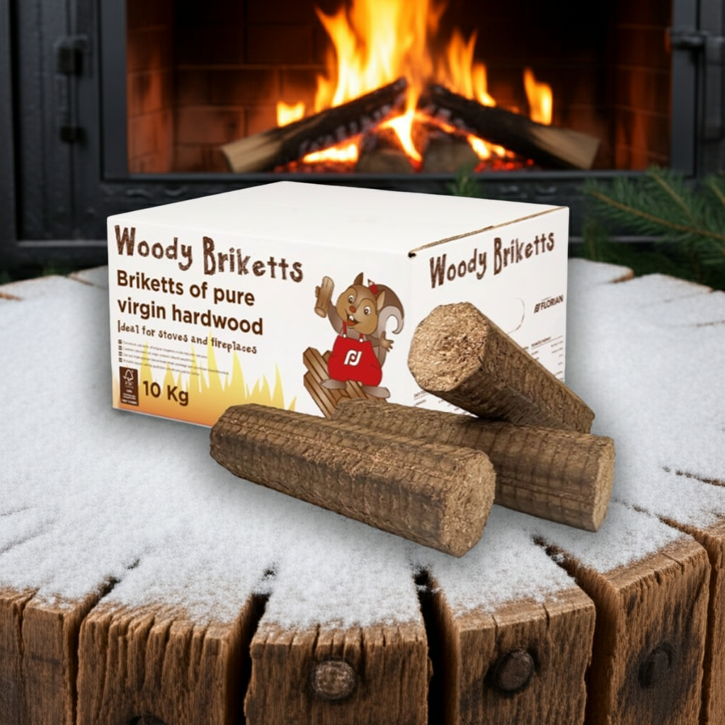 Afhaalproduct of meegeleverd product bij aankoop van pallet brandhout Doos woody eik/beuk briketten 10kg