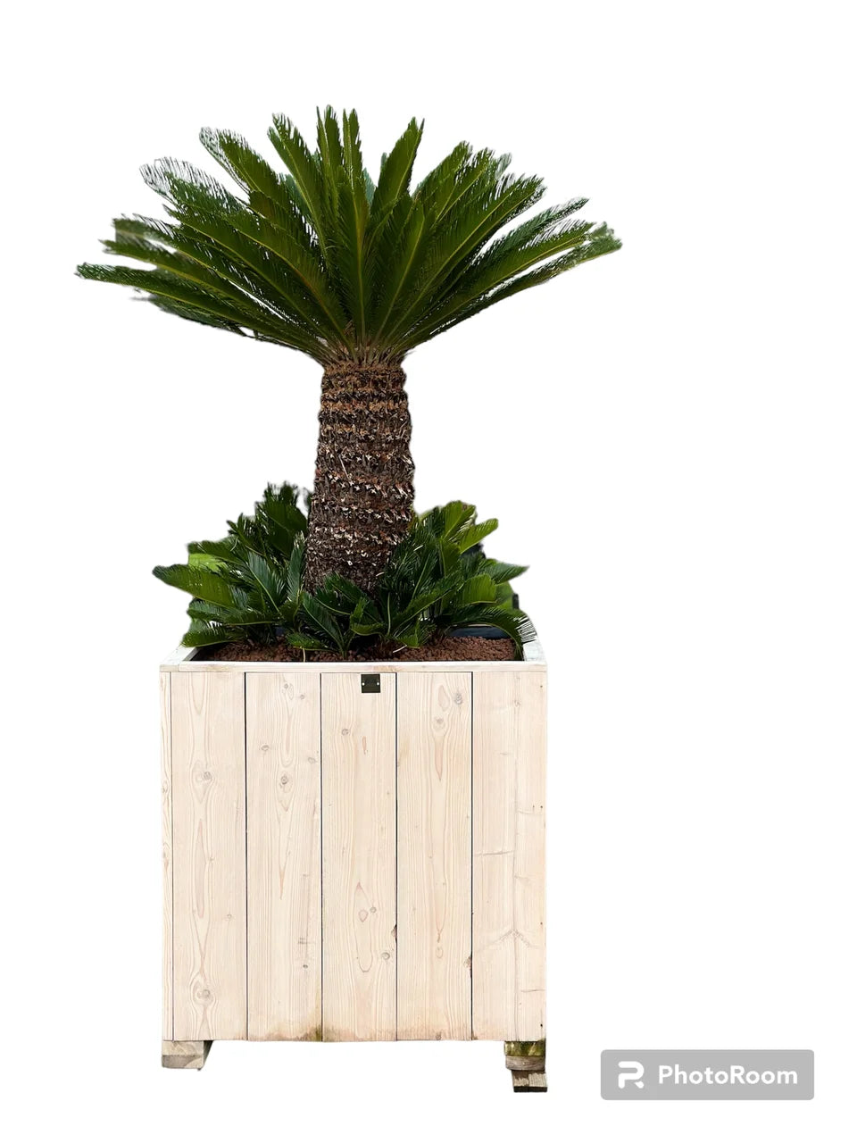 Cycas revoluta - 225cm hoog - in steigerhout pot