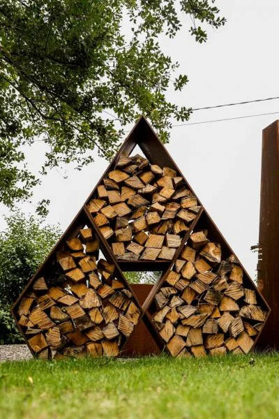 Deze Flam cortenstaal houtopslag is een perfecte opslagplaats