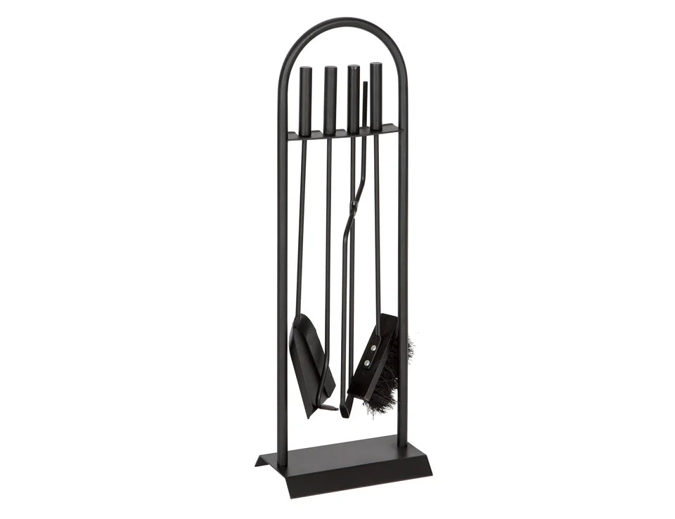 In zwart gecoat staal Vijfdelig: houder, pook, schop, tang, borstel Hoogte : 67,0 cm
