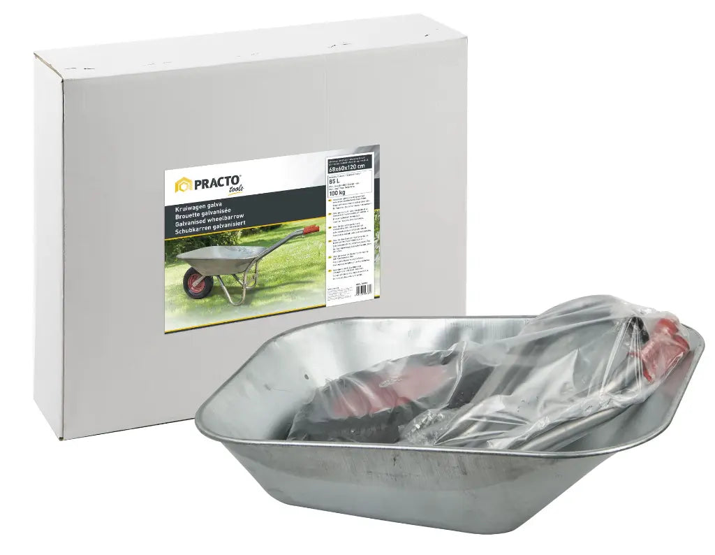 De kruiwagen Galva is perfect voor tuinwerk en het vervoeren van materialen. Gemaakt van gegalvaniseerd staal voor duurzaamheid en uitgerust met een opblaasbaar wiel voor soepele verplaatsing. De wagen moet worden gemonteerd; benodigde bouten en moeren zijn inbegrepen. Ideaal voor veelzijdig gebruik in elke tuin.