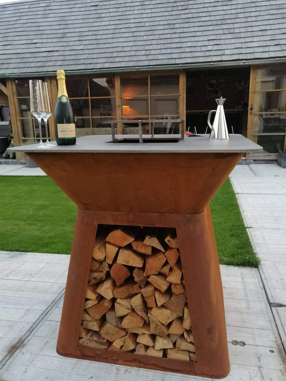 Meyerfire Cortenstaal BBQ met carbon stalen bakplaat +houtopslag Ø80*H100 cm