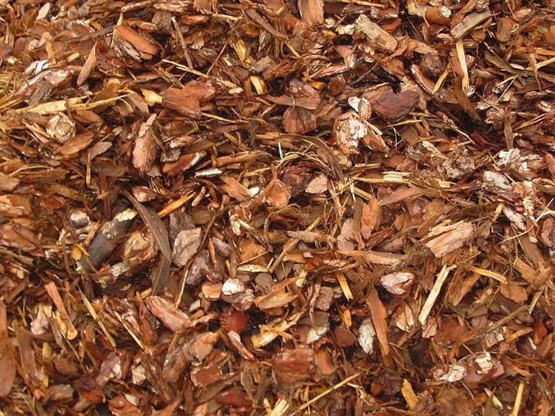 sylvesterschors (Pinus sylvestris) kaliber 25/40 mm hoeveelheid: 8 tot 10 cm boomschors 1,5 m3 is goed voor het bedekken van zo'n 15 tot 18 m²