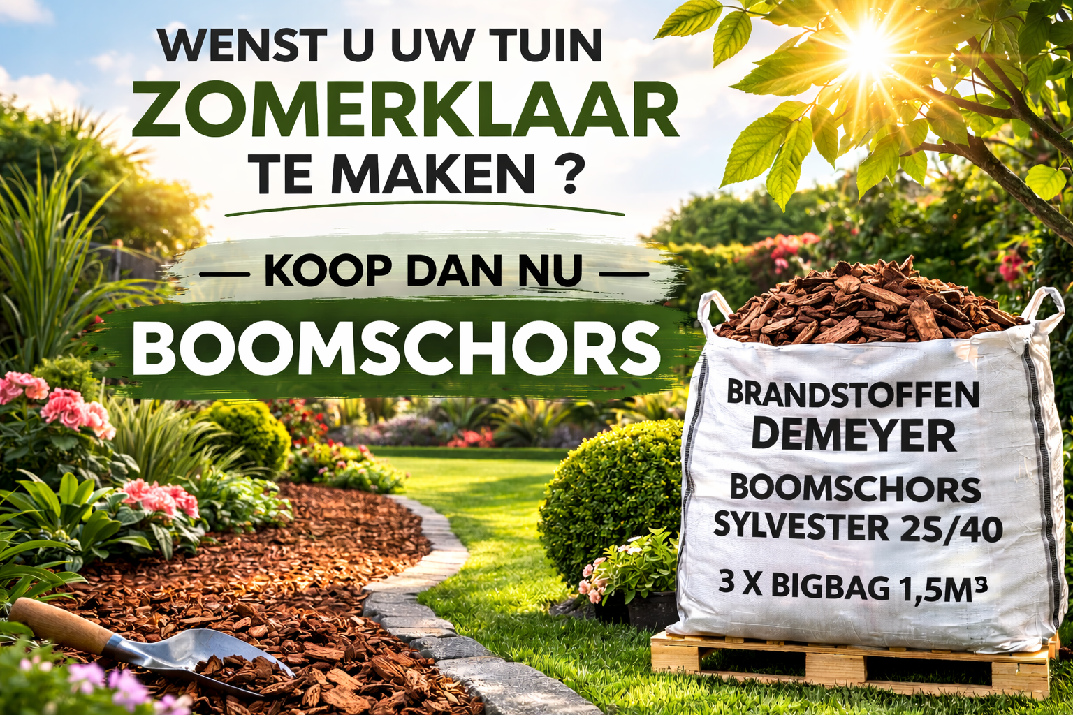 sylvesterschors (Pinus sylvestris) kaliber 25/40 mm hoeveelheid: 8 tot 10 cm boomschors 1,5 m3 is goed voor het bedekken van zo'n 15 tot 18 m²