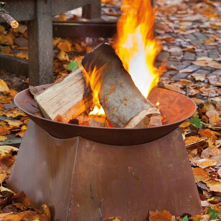 Door zijn aparte vormgeving wijkt deze vuurschaal op een leuke en speelse manier af van de vele andere modellen. Door zijn omvang kunt u er bovendien grote blokken hout in branden. Met de vuurschaal roest op voet komt dit volledig tot zijn recht.